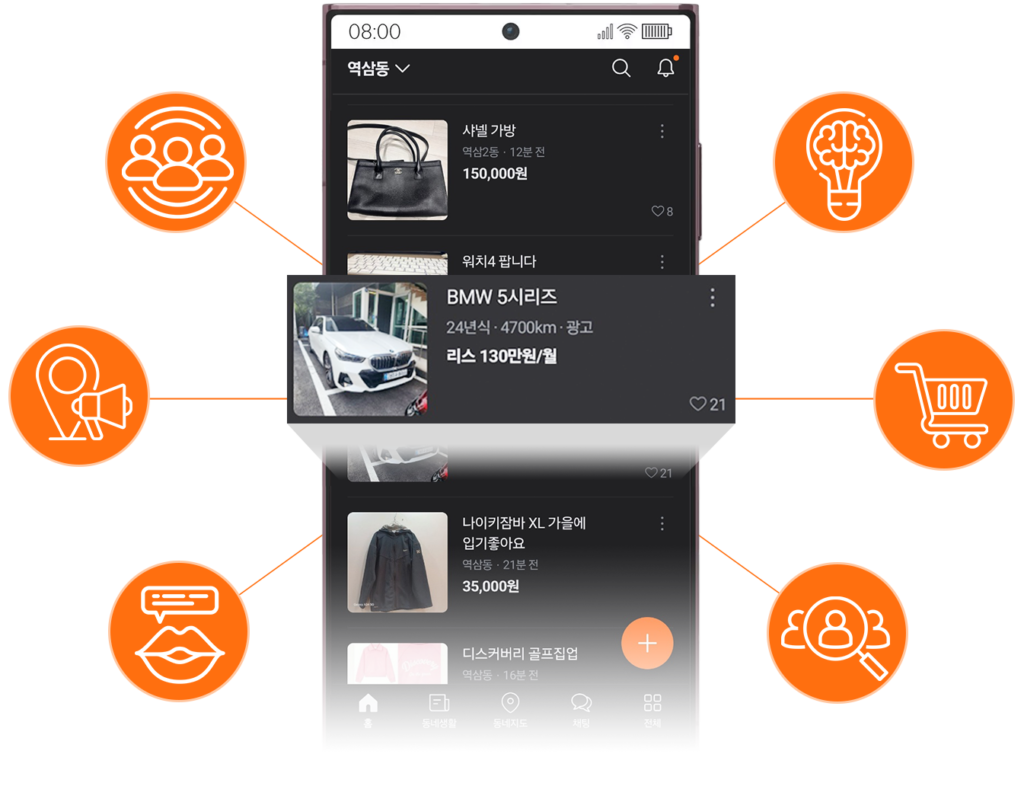 이렇게 많은 당근이웃이 여러분의 고객입니다. 지역을 기반으로 영업하는 자영업자 및 소규모 사업체를 운영하시는 분들께는 당근마켓이 인스타그램보다 더 훌륭한 마케팅 수단일 수 있습니다.